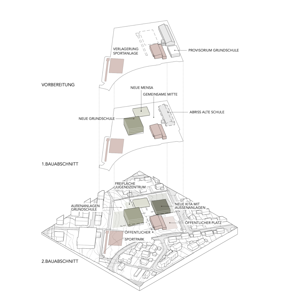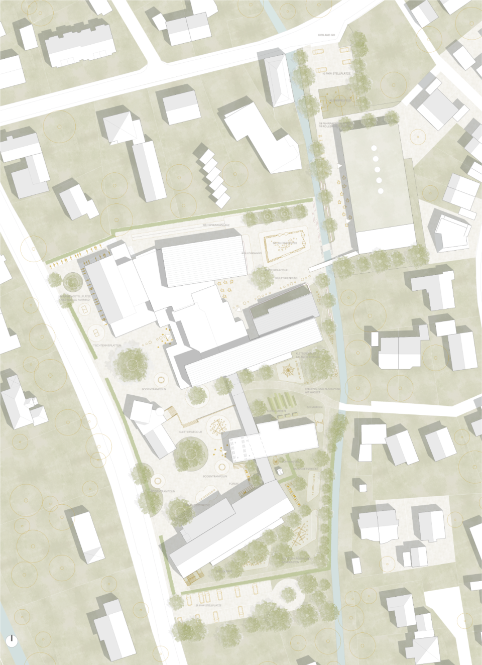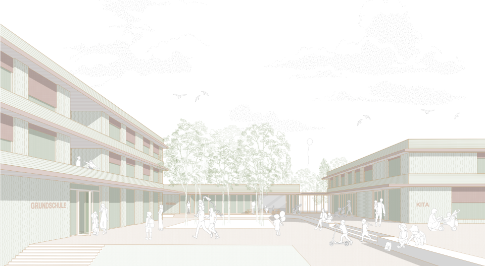 Zentralbereich Gaisbach Künzelsau, Wettbewerb 2024, 4. PreisNeubau Kita und Grundschule mit Mensa
