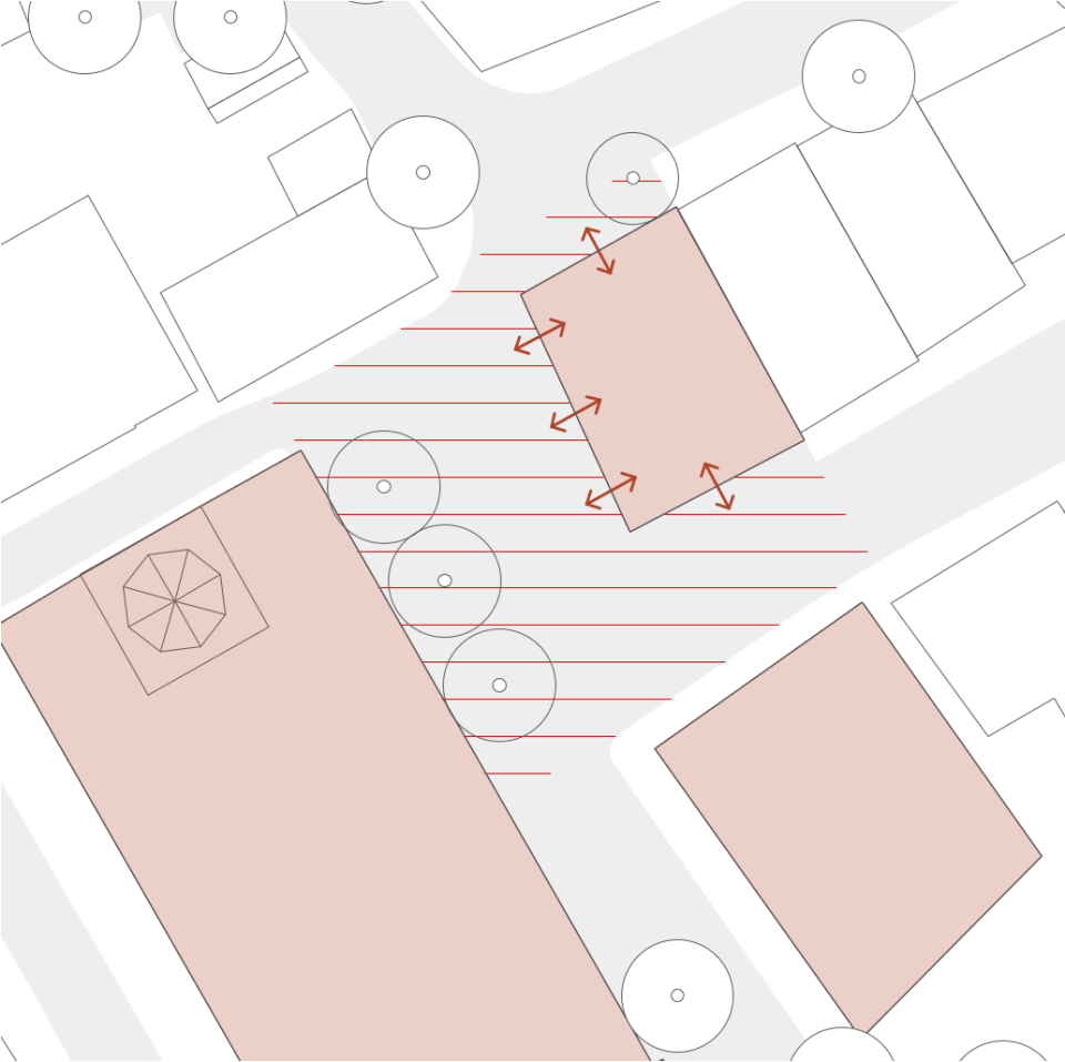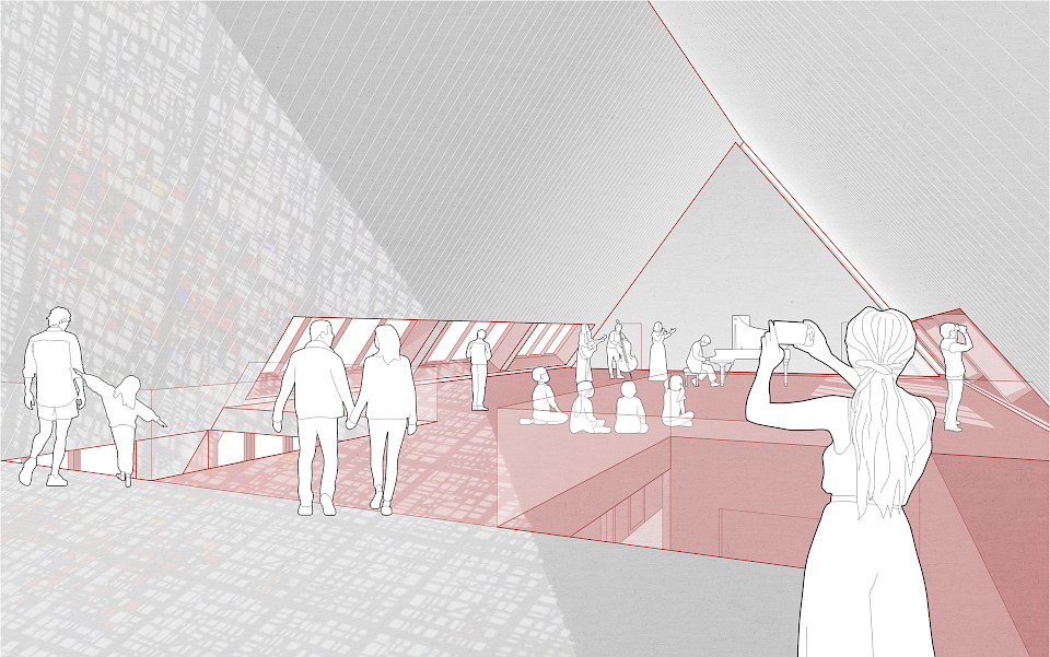 Die Kirche St. Hedwig bildet mit ihrem markanten Baukörper und Turm ein städtebauliches Highlight. Ein geplanter Neubau ersetzt bestehende Anbauten und schafft durch klare Kubaturen, ein auskragendes Vordach und Sichtachsen zur Kirche eine neue städtebauliche Ordnung. Die barrierefreie Erschließung erfolgt über die Lieschingstraße und eine neue Verbindung zur Kapelle. Das Gemeindehaus wird mit Hedwigsaal, Gruppenräumen und einem transparenten Foyer neu organisiert, wobei Innen- und Außenräume fließend verbunden sind. Die Konstruktion basiert auf einer nachhaltigen Holz- und Betonbauweise mit sichtbaren Holzträgern, die Akustik- und Lichttechnik integrieren. Eine helle Holzfassade, großzügige Verglasungen und natürliche Belichtung sorgen für eine behagliche Atmosphäre. Das Energiekonzept setzt auf kompakte Bauweise, PV-Anlage, natürliche Lüftung und ökologische Dämmstoffe. Im Außenbereich entstehen begrünte Terrassen, Spielflächen und Aufenthaltsorte, wobei Bestandsbäume erhalten bleiben und neue grüne Elemente das Ensemble ergänzen.